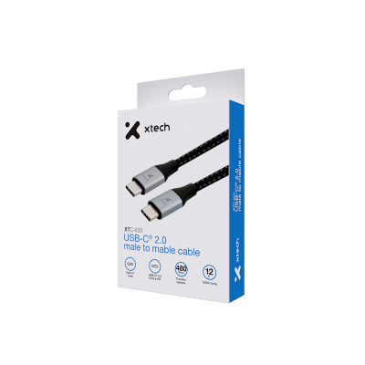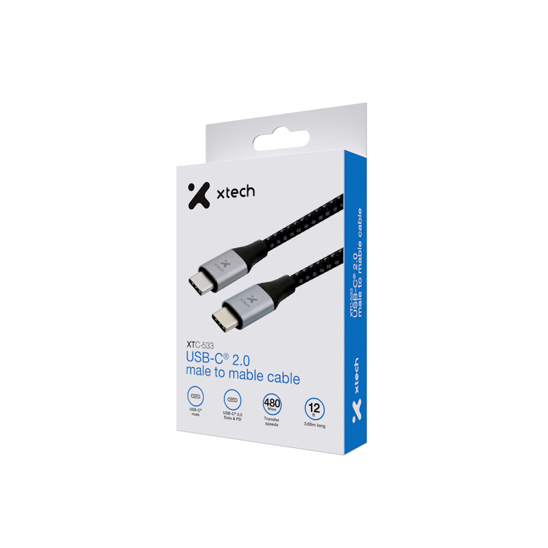 Cable USB Tipo C Xtech XTC-533 Trenzado 3.66m Negro y Plateado