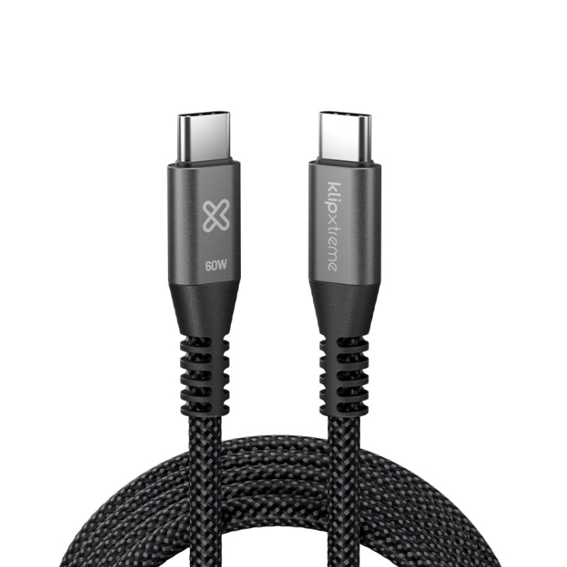 Klip Xtreme KAC-250 Cable USB-C Trenzado Carga Rápida 60W 1.8m Negro