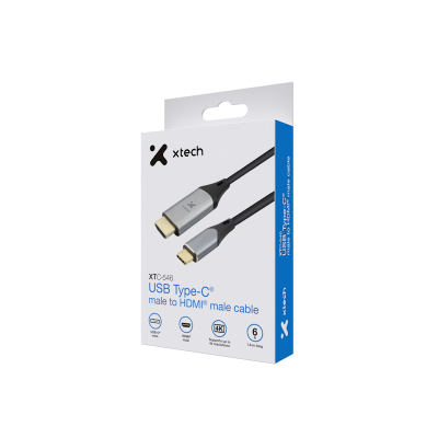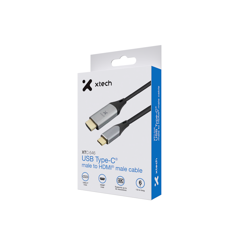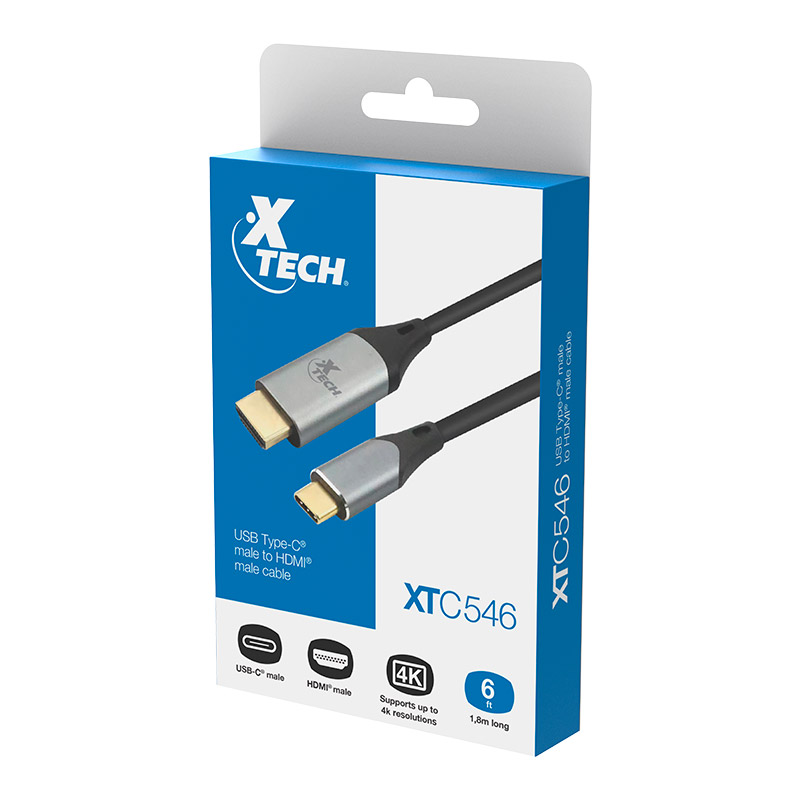 Xtech XTC-546 Cable USB Tipo C a HDMI 1.8m Negro y Plateado