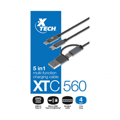 Xtech XTC-560 Cable USB Tipo A/C a Micro USB/Lightning 1.2m Carga