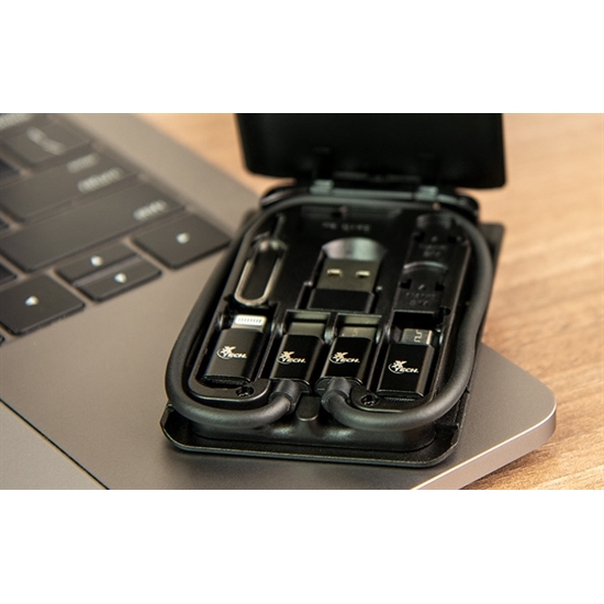 Xtech XTC-570 Kit Cable USB-C con Adaptadores USB-A Micro Lightning Negro
