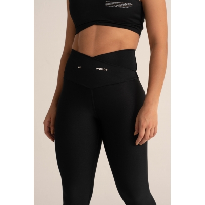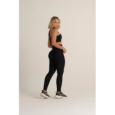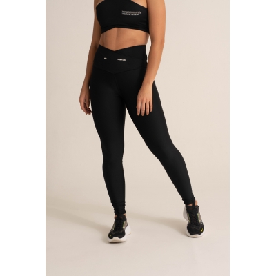 Leggings deportivos de mujer en color negro, hechos de lycra elástica que se adapta a diferentes tipos de cuerpo, con una pretina de control abdominal estilo cola de sirena y tecnología de compresión para mayor soporte en el abdomen. Fabricados con telas inteligentes de alta densidad y suaves para brindar comodidad durante el ejercicio y evitar transparencias incómodas al hacer sentadillas o flexiones. Perfectos para combinar con cualquiera de nuestros bras.