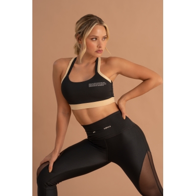 Leggings deportivos de mujer en color negro y Mesh, hechos de lycra elástica que se adapta a diferentes tipos de cuerpo, con una pretina de control abdominal y tecnología de compresión para mayor soporte en el abdomen. Fabricados con telas inteligentes, suaves y de alta densidad para brindar comodidad durante el ejercicio y evitar transparencias incómodas al hacer sentadillas o flexiones. Ideales para combinar con cualquiera de nuestros bras.