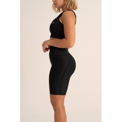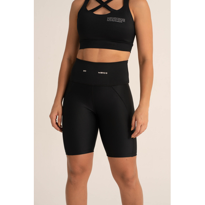 Biker deportivo de mujer en color NEGRO, hechos de lycra elástica que se adapta a diferentes tipos de cuerpo, con una pretina con control de abdomen y tecnología de compresión para mayor soporte abdominal. Fabricados con telas inteligentes de alta densidad y suaves para brindar comodidad durante el ejercicio y evitar transparencias incómodas al hacer sentadillas o flexiones. Ideales para combinar con nuestros bra.
